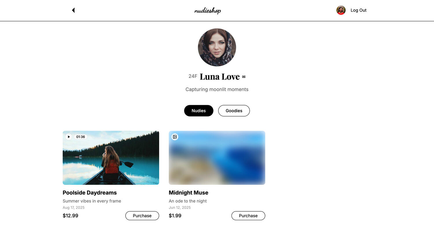 nudieshop is a site / mobile app developed by a solo entreprenur from the san francisco bay area. Coming soon in 2026, it is a safer, privacy-oriented, and creator-friendly model subscription website such as Fansly or Onlyfans. With many more young adults turning to content creation on OnlyFans, I wanted to provide an alternative where they are in full control of their own content. Uploads on nudieshop can never be screenshot, screen-recorded, or downloaded. You can delete all of your videos with a single button from our servers forever, at any time, and choose exactly who gets to see your content and who does not. You are also able to block access to your profile from all users in specific locations (for example, your hometown).Finally, creators will be able to keep 100% of their earnings with service fees passed down to the consumer for each purchase to help keep the site alive.